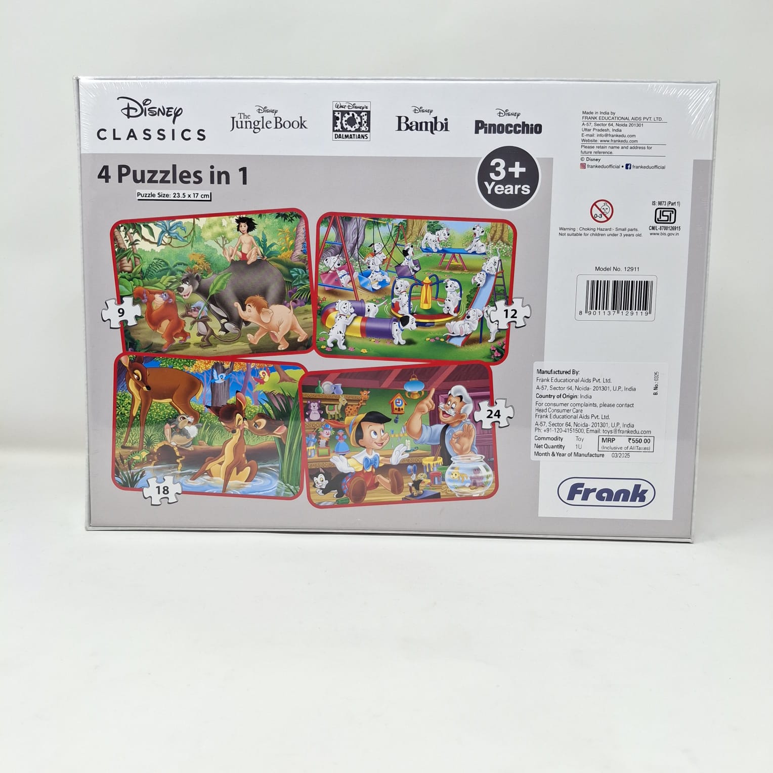 Relive timeless tales with the Frank Disney Classics 4-in-1 Puzzle – four enchanting puzzles in one box for endless magical fun!