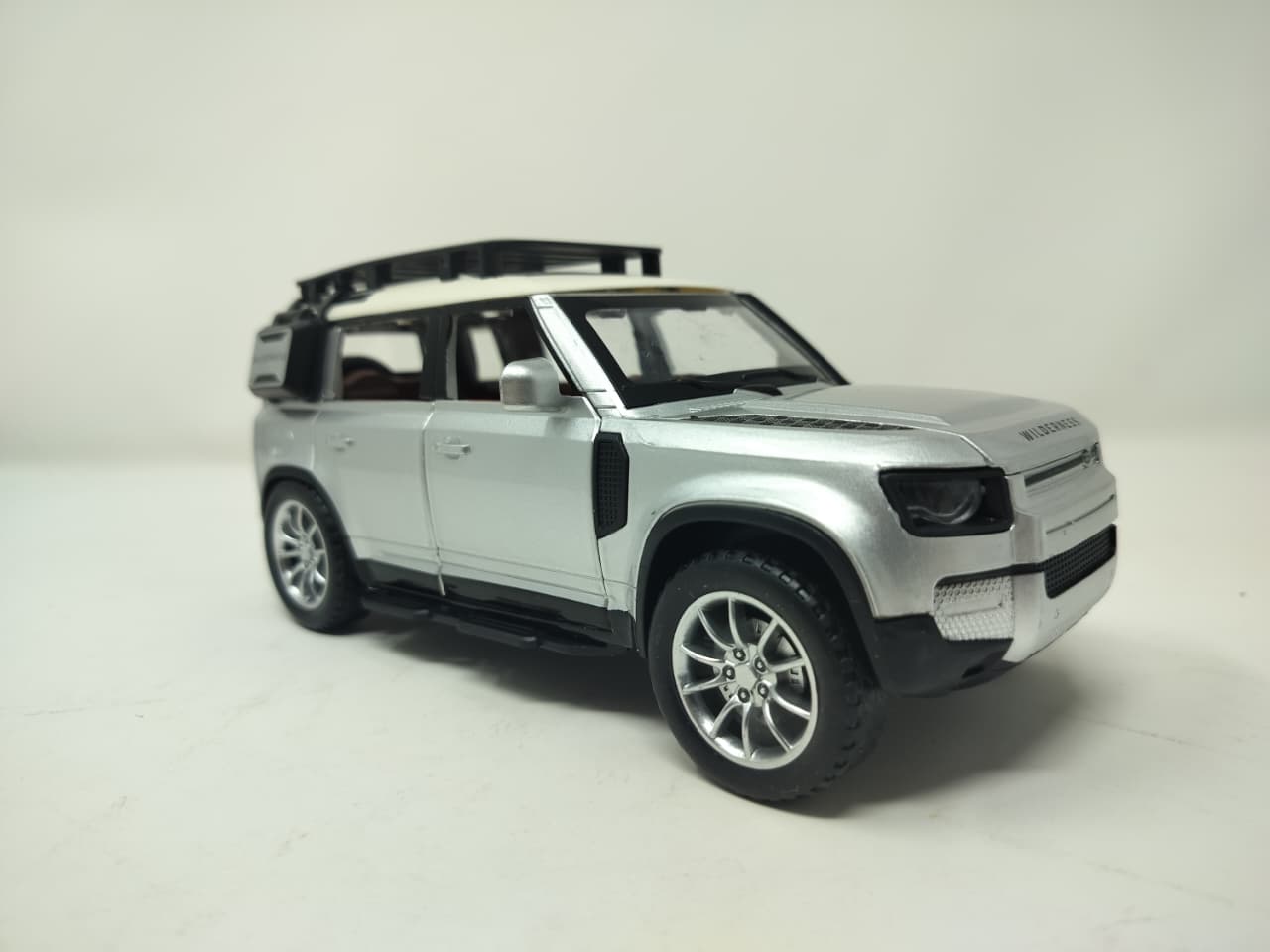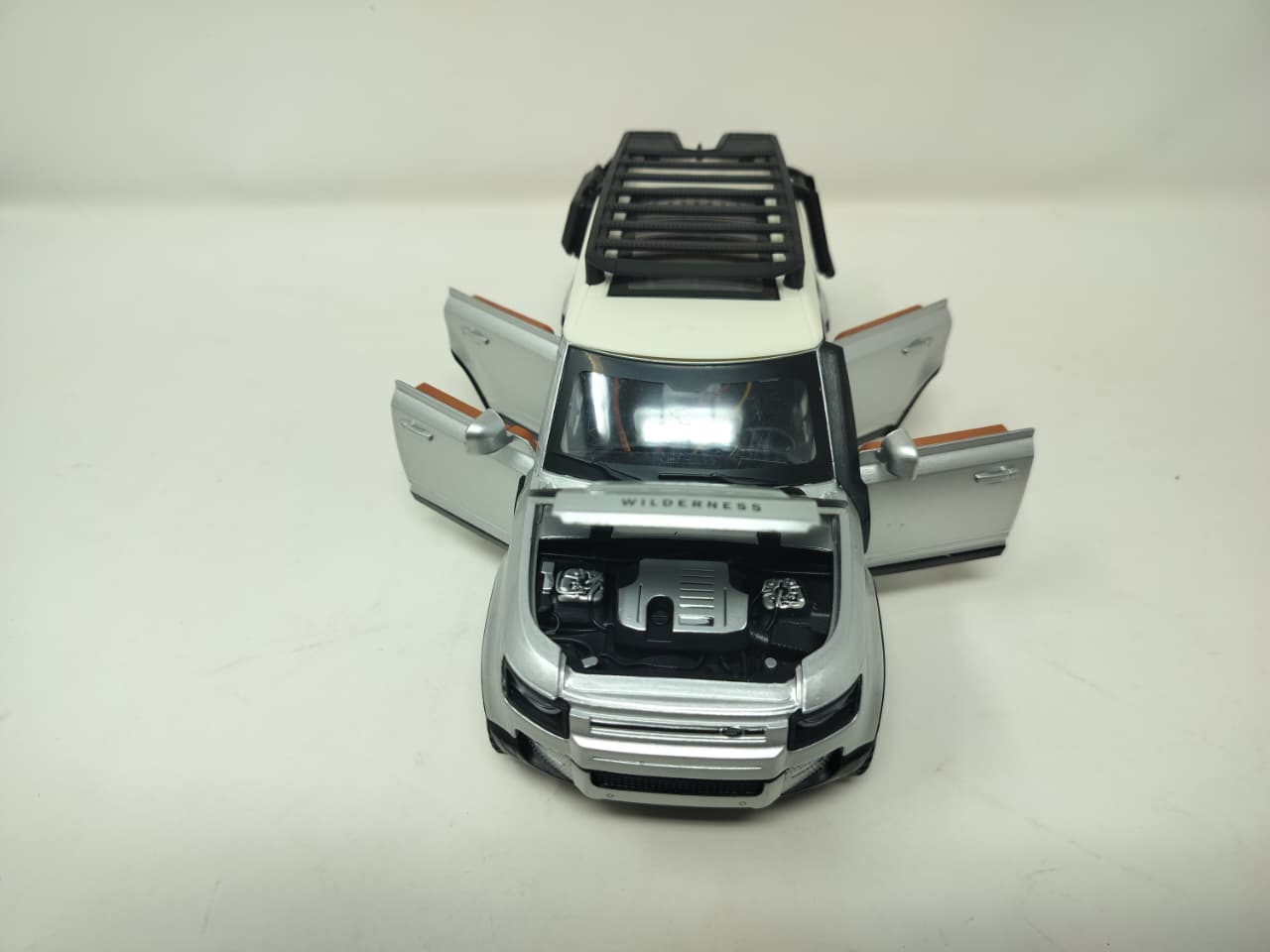 Conquer the road and the shelf with this rugged Land Rover Defender die-cast, featuring an adventure-ready roof rack, side ladder, and a functional hood that reveals its powerful engine detail.