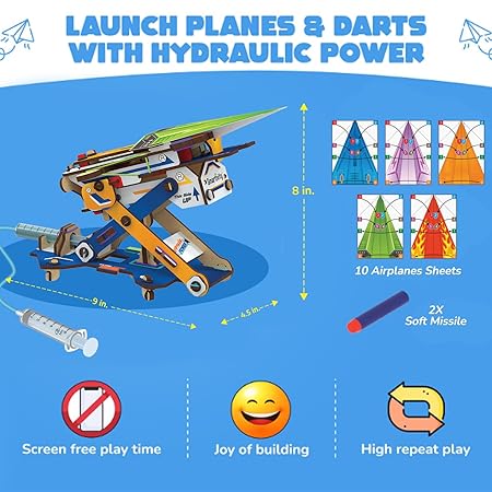Smartivity 2in1 Hydraulic Aeroplane & Dart Launcher Toy for Kids 6-8-10-12-14 Years Old | Shoots Planes/Darts Far in Air I Birthday Gifts for Boys & Girls | DIY Science Toy for Kids 6-14