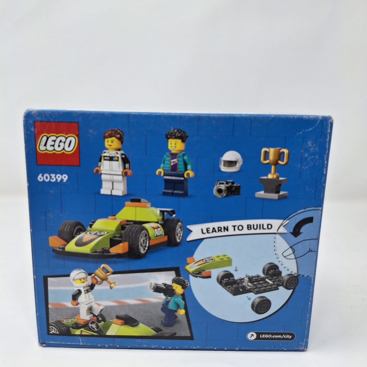 LEGO City 60399 – Green Race Car: Ignite young imaginations with this speedy 56-piece set featuring a vibrant green race car, complete with slick tires, a rear spoiler, and a racing driver minifigure. Ideal for ages 4+, it includes a Starter Brick for easy assembly, a photographer minifigure, and a winner’s trophy to inspire creative storytelling. The set also offers 3D building instructions via the LEGO Builder app, enhancing the building experience.