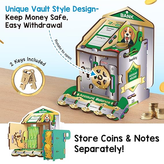 Smartivity DIY Piggy/Money Bank for Kids Ages 6-12 Years | Smart Locking System with 2 Keys I Stores Notes & Coins I Build Savings Skills in Kids I Birthday Gift for Boys & Girls 6,7,8,9,10,11,12